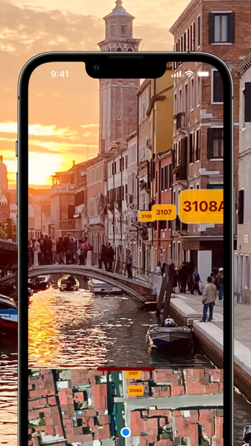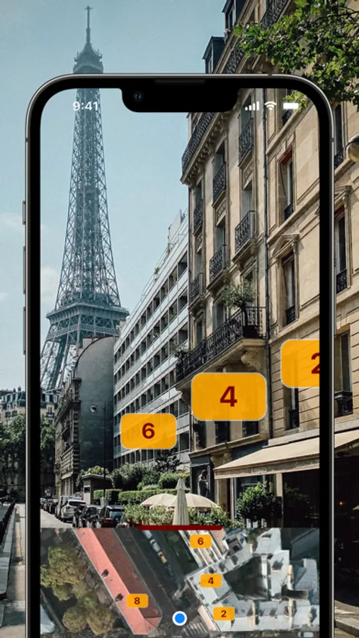 HouseNumbers displayed in AUGMENTED REALITY - View building numbers with your iPhone camera in a big and clear way.