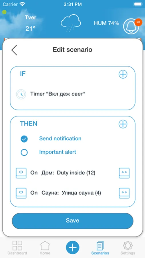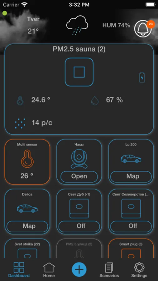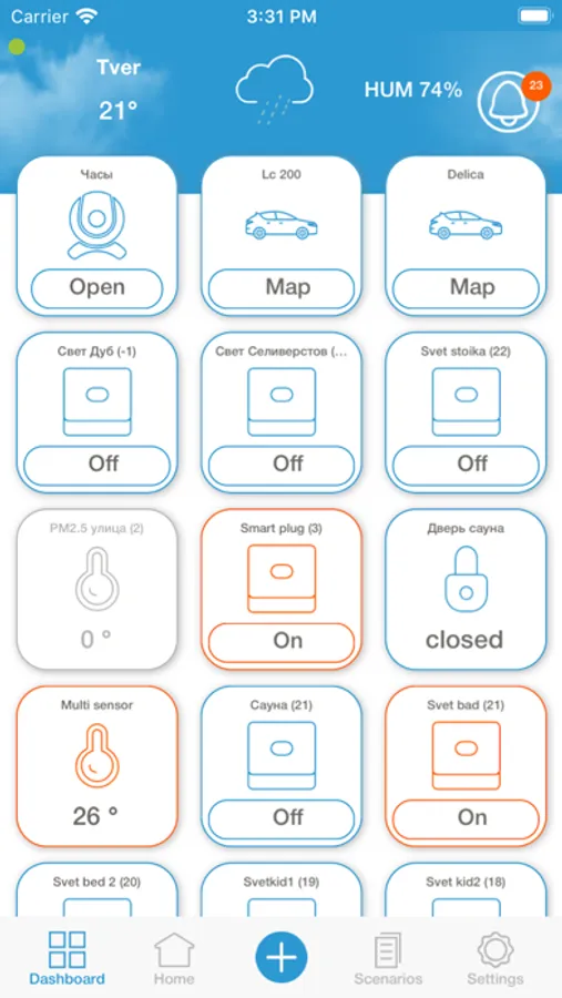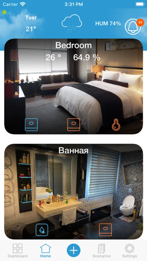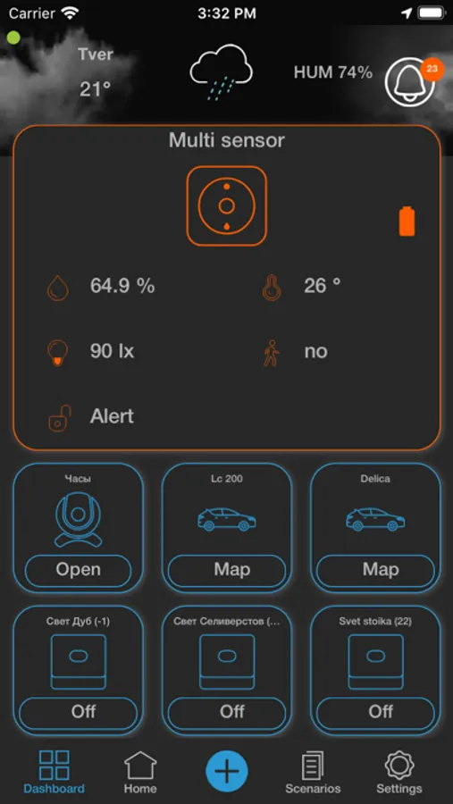 View sensor statuses and remotely monitor equipment, configure device interaction scenarios, watch real-time video from surveillance cameras or view archived recordings.