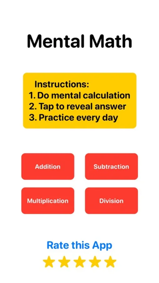 For the mental math flash cards, tap to see the exercise, do mental calculation, tap again to see the result.