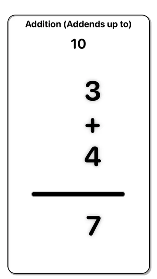 - Mental Math (addition, subtraction, multiplication, division) - Math flashcards with simple operations where the child can take as much time as they need to calculate the math mentally and with a tap to check if the answer is correct.