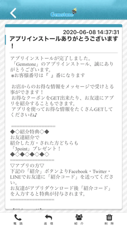 GemstoneのアプリをSNSを通じてお友達に紹介する事ができます。