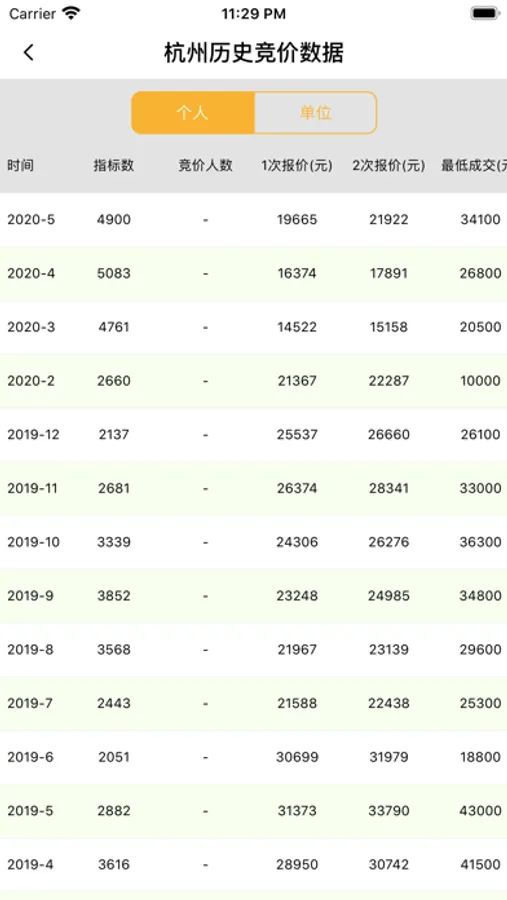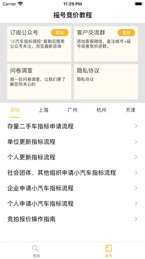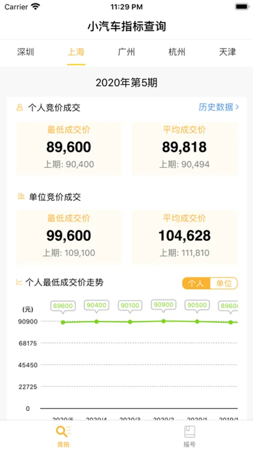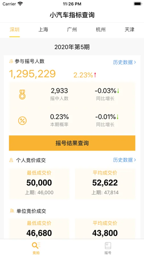 2.支持深圳、上海、杭州、广州和天津的个人及单位指标竞价成交价格查询。