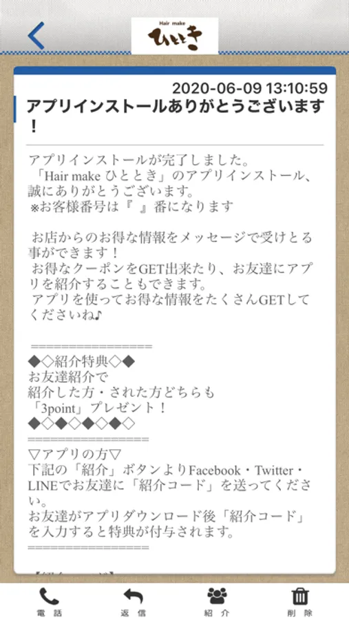 ひとときのアプリをSNSを通じてお友達に紹介する事ができます。