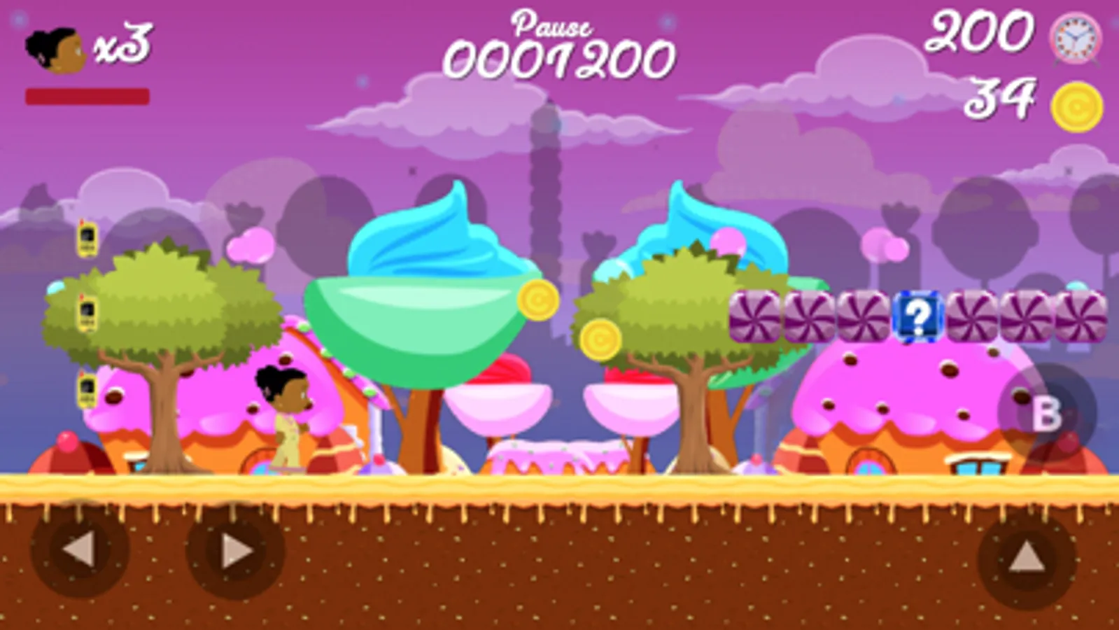 Help Lullaby Lettie make it to her Grandma’s House. You must travel to Candy Land, Yum Candy, Berry Land, Cotton Candy.Like most kids that can’t wait to visit grandma’s house, Lullaby Lettie wants to do the same but she has a couple of things keeping her from reaching her destination.She has to avoid Birds that drop green Slime and Frogs that pass gas and make the Fart sound when you jump on them. Help her defeat the Birds and Frogs and be on the lookout for a phone booth that she can use to call her Grandma for help. -Easy to play -4 levels=Candy Land, Yum Candy, Berry Land, Cotton Candy -Simple Game with a lovable cast of characters -Collect coins and Phones so she can call her Grandma for help -Run and Dodge the Green Slime that dropped by Birds -Jump on top of the Gassy Frogs to knock them over -Journey with Lullaby Lettie to complete all levels -If you complete all levels you will help her reach Grandma’s House