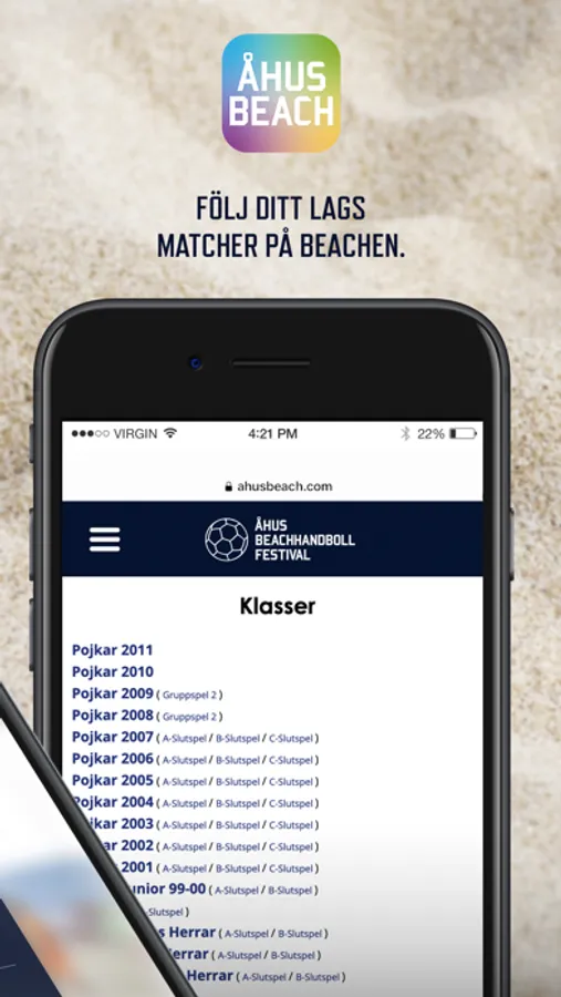 Välkommen till Åhus Beach officiella app! Här hittar du allt om turneringarna och de senaste nyheterna. Ladda ner appen för att ta del av allt kul som händer i juli. Här hittar du spelschema, matcher genom tiderna samt roliga spel och tävlingar där du kan vinna fina priser.