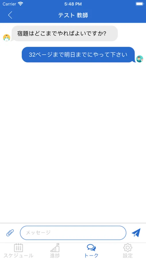 ・専用のチャット機能を使って、担当教師に直接連絡ができます。