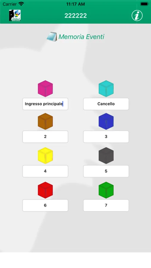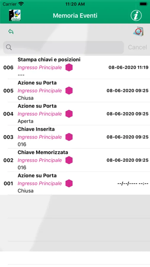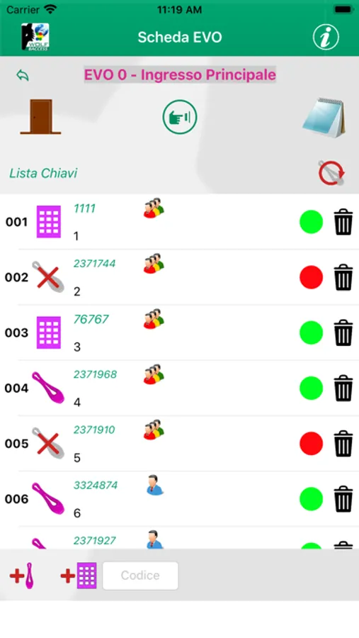 App dedicata alla gestione del sistema controllo accessi Wolfsafety 8Access V5 in connessione Cloud.
