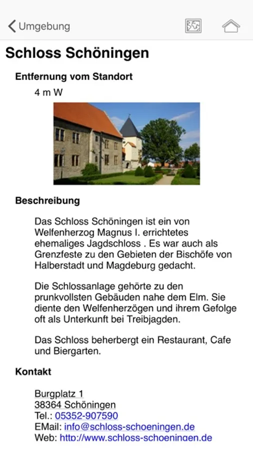 Durch längeres Drücken auf ein POI-Symbol in der Karte werden die Detailinformationen aufgerufen. Diese bestehen meist aus einem Bild, detaillierter Beschreibung, Tipps und Hinweise, sowie Adresse, Telefonnummer und Link auf die Webseite, sofern diese vorhanden sind. Mit einem Klick kann ein Anruf getätigt oder direkt die Webseite aufgerufen werden, die dann aktuelle und weiterführende Informationen liefert.