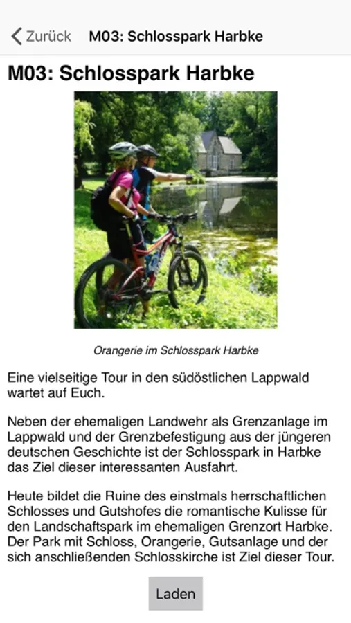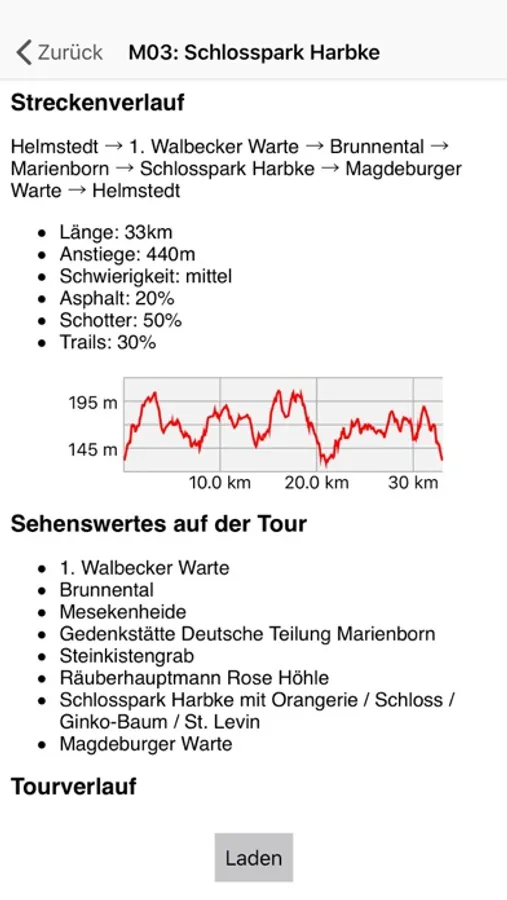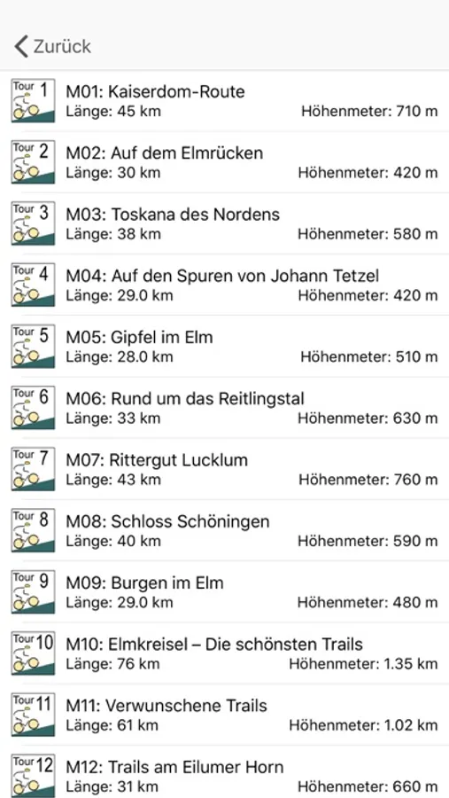 Diese App enthält 12 Vorschläge für Mountainbike-Touren im Elm und 3 Vorschläge für Touren im Lappwald, die von einem Kenner gemeinsam mit Freunden ausgearbeitet wurden. Alle Vorschläge sind als Rundkurs ausgelegt und so miteinander vernetzt, dass man sie individuell verlängern oder bei Bedarf verkürzen kann. Sie werden ergänzt durch Informationen sowie Kontaktadressen, Öffnungszeiten usw. zu über 90 Sehenswürdigkeiten und Einkehrmöglichkeiten (POIs).