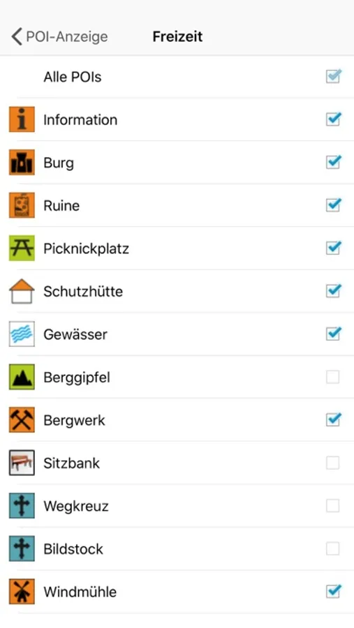 Um die Karte übersichtlich zu halten, können Inhalte ausgedünnt und die Darstellung der POIs in den Einstellungen individuell angepasst werden. Je nach Schwerpunkt oder Anwendungsfall können Sie festlegen was angezeigt wird.