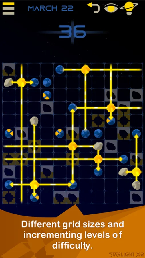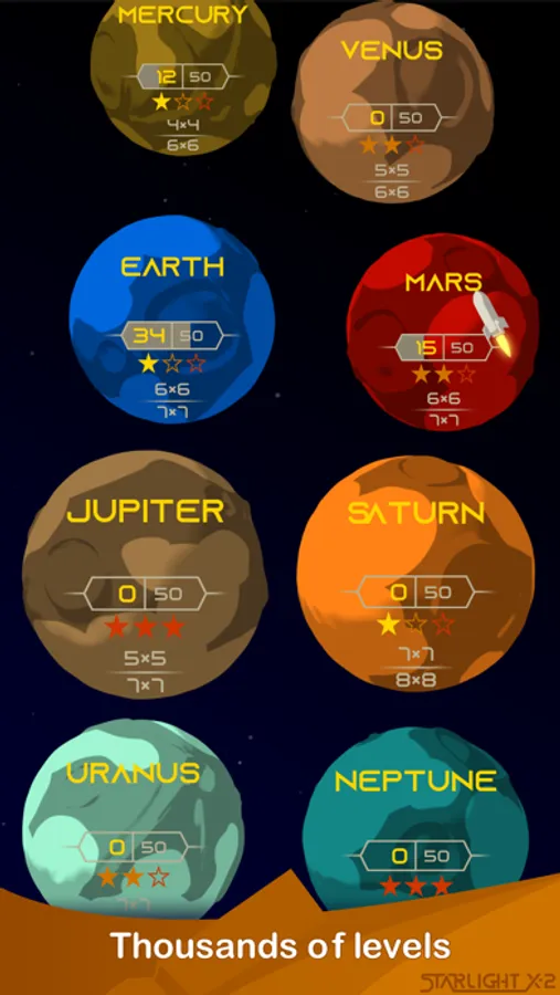 A wide variety of starlit light puzzle levels free of ads.