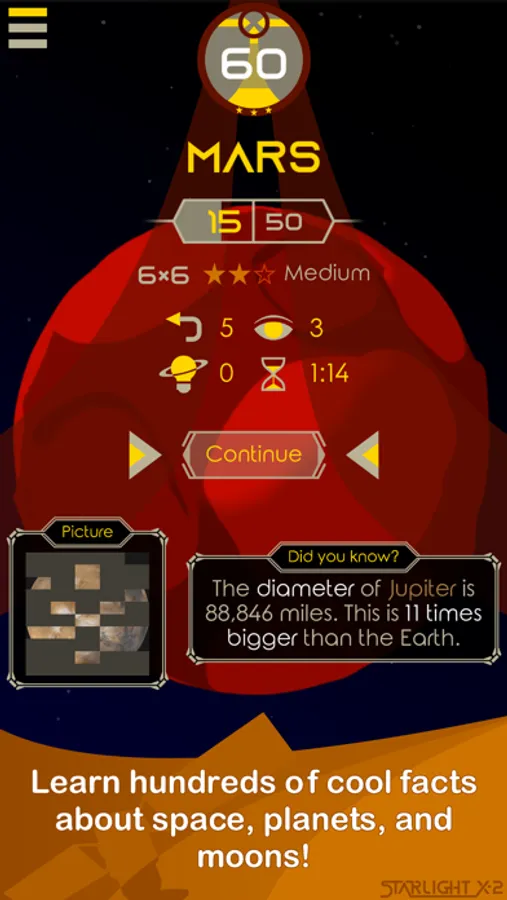 If you are a big fan of how our universe works, Starlight X-2: Cosmic Puzzle is a perfect cosmology planet star game for you. Solve unique puzzles every day and unlock beautiful pictures of space at the end of each level.