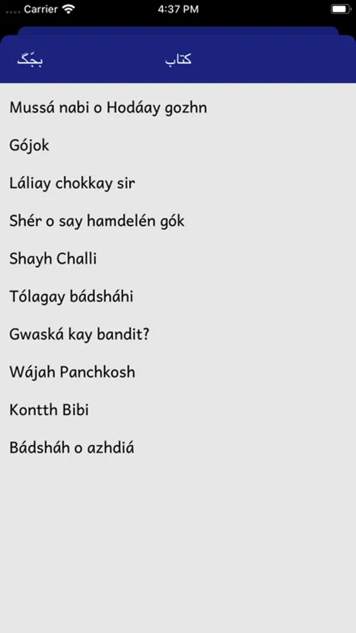 This app contains 10 Balochi folktales and stories (text and audio) in Latin and Arabic script. The stories are traditional folktales rendered into the standard Balochi language by Aziz Dadiar and Carina Jahani. Mahsa Mir is the illustrator of the book. In the tales, you meet kings and queens, prophets and shaikhs, thieves and robbers, dragons and lions, cows and sheep and a lot of other characters. All of the stories are part of the Balochi cultural heritage that should be passed on to your children and grandchildren. This app is a gift to all Balochi language lovers and will be updated on a regular basis with more tales and stories. Enjoy!