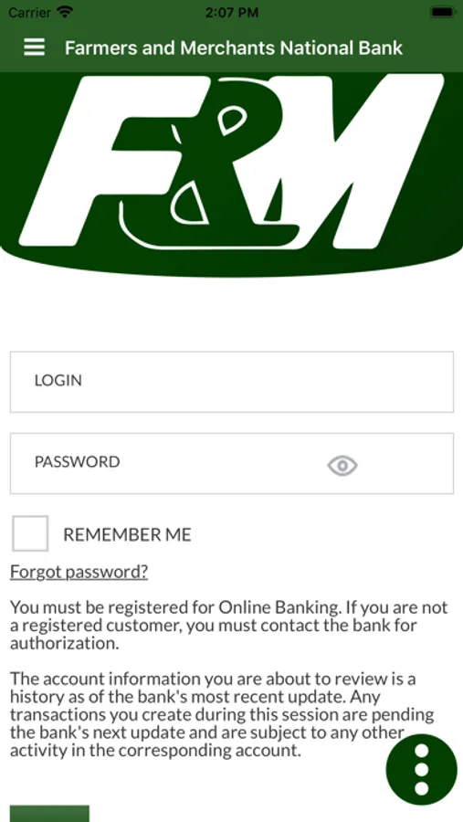 The Farmers and Merchants National Bank Mobile Banking App is available to download at no cost. Your mobile carrier may impose data charges depending on your individual plan. Check with your carrier on specific fees and charges.