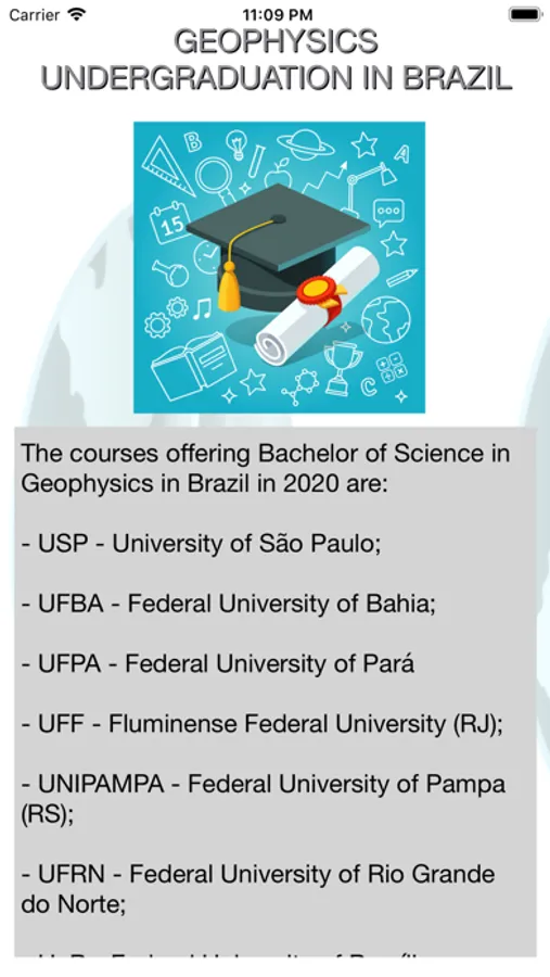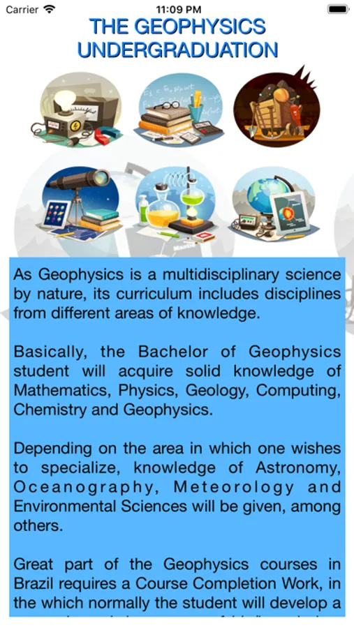 You will also find information about the career of geophysicist and the Brazilian institutions that offer the Bachelor of Geophysics course. Use it and disseminate it to people who want more information about this area of activity and the profession.