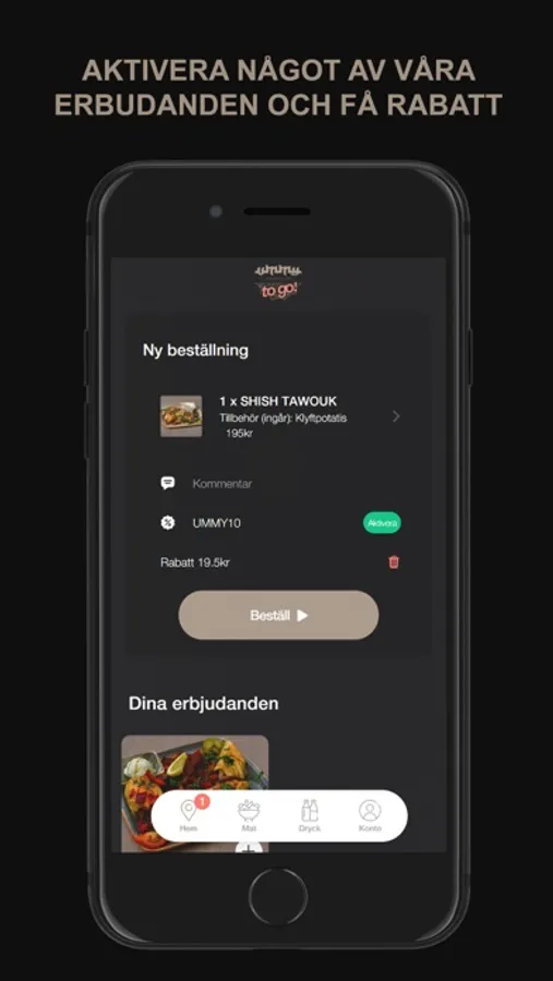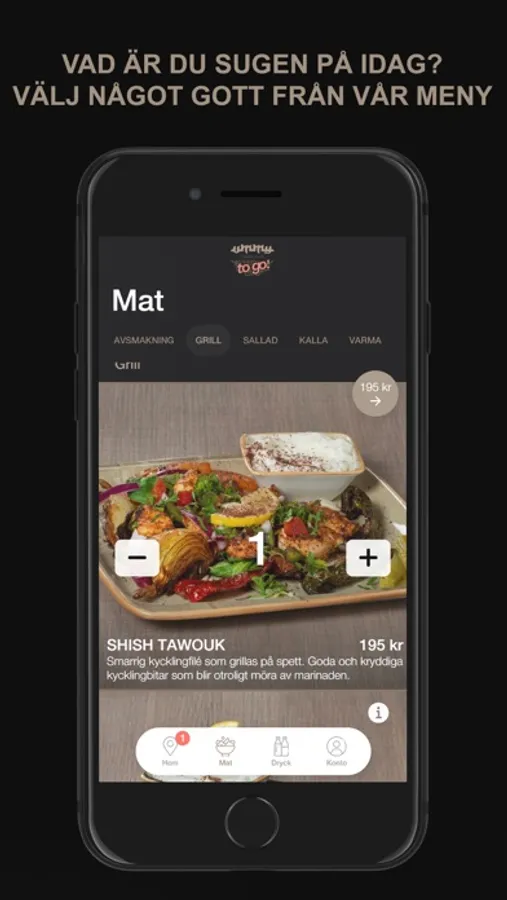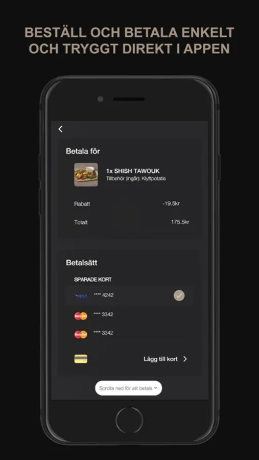 I vår app kan du beställa din mat och betala direkt i din telefon.