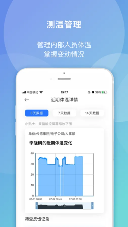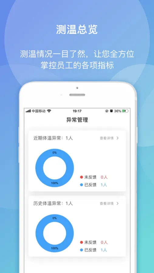 1. 人员测温情况一目了然,让您全方位掌控员工测温的各项指标。