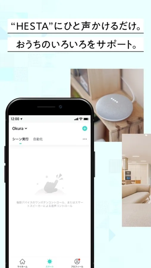 HESTA HOMEは、AI+IoTでリンクした住まいを専用アプリで管理・操作できる、AIスマートホーム。