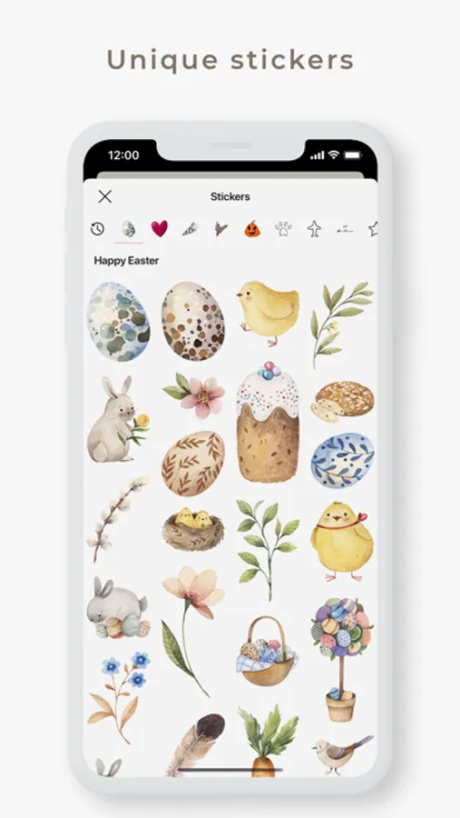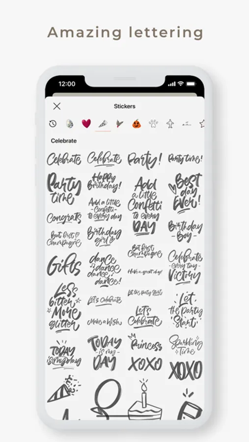 • Add free ready letterings from regularly replenished sticker packs or write your own text with one of many fonts available in the application, some fonts support Cyrillic.