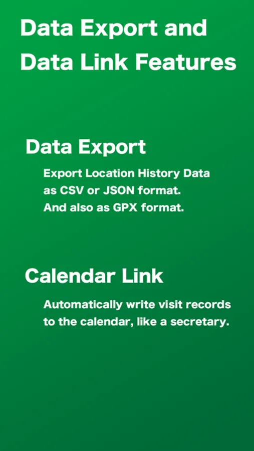 All location information recording data can be exported as CSV or JSON.