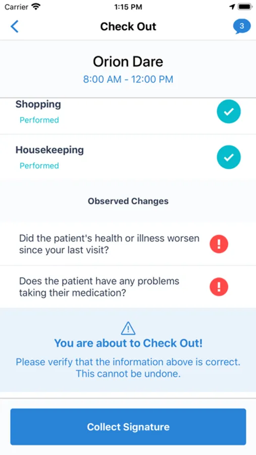 CareBridge provides electronic access to caregiver schedules, allows caregivers to check in and check out for visits in real time, and enables caregiver documentation of care plans and observed changes in member conditions. The application functions regardless of whether the user has data access at the time of the visit. CareBridge collects time and location for the caregiver only explicitly upon check in and check out. No location or time data is polled by the application and CareBridge has no passive access to user information.