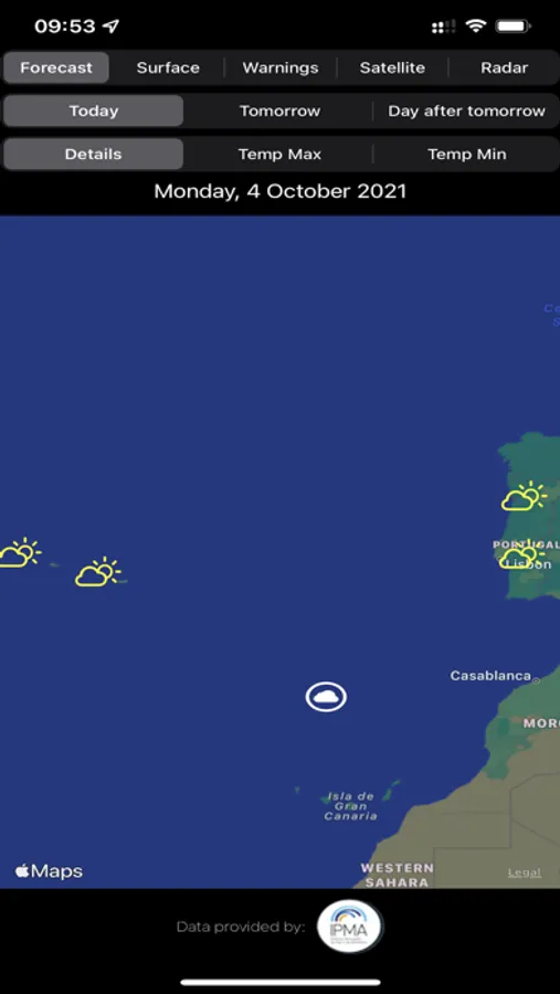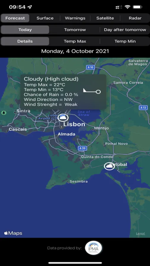 - Weather forecast for today, tomorrow and the day after tomorrow for mainland Portugal as well as Azores and Madeira with detailed information for each main city with the following information: