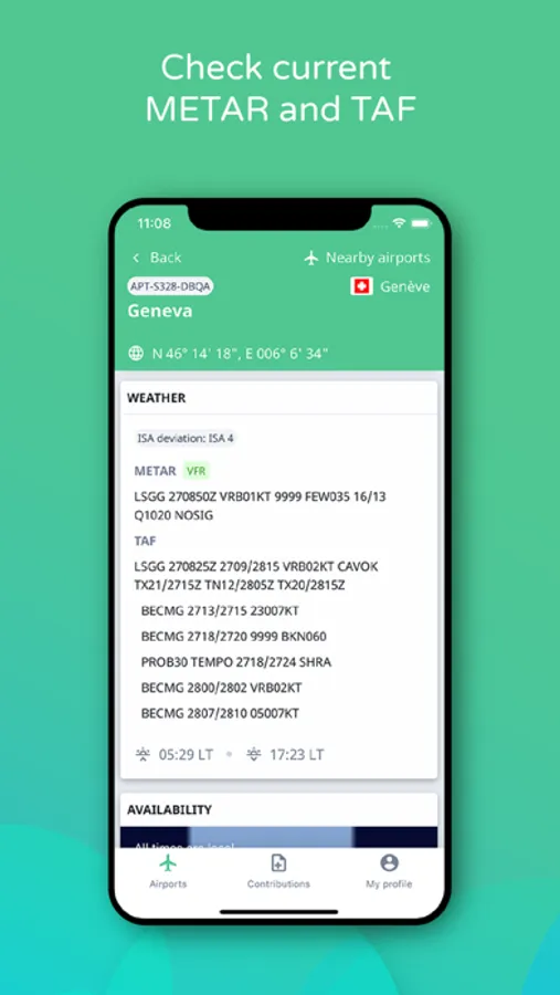 Keep an eye on the weather with real-time airport TAF and METAR, including ISA deviation and sunrise/sunset timings.