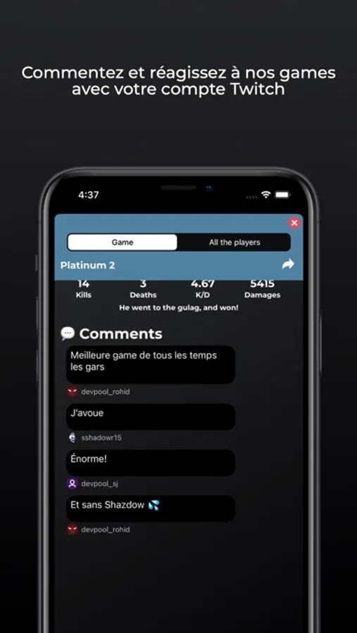 - Consultez les statistiques et le classement de tous les joueurs de Devpool eSport