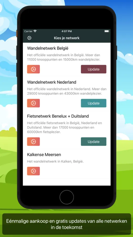 Voor aankoop kunnen alle netwerken getest worden. Wandelnetwerk Kalkense Meersen is gratis meegeleverd. Gebruik de app op iPhone en iPad en deel moeiteloos routes met andere gebruikers.