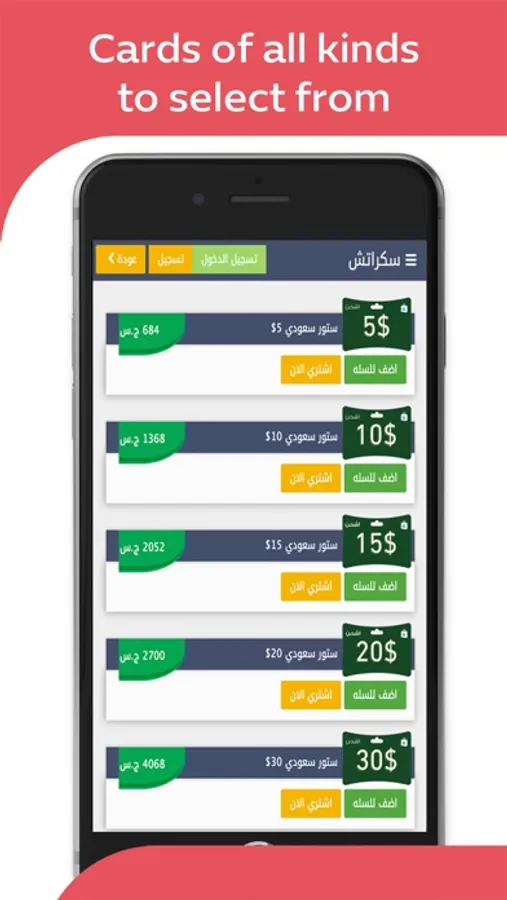 Cards that you can buy through the application