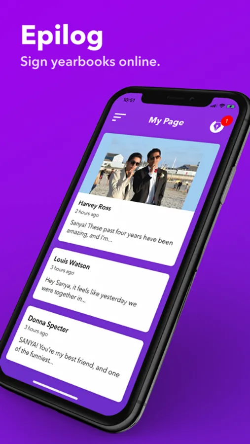 Epilog takes yearbook signing online. Invite your friends, family, and teachers to sign your virtual page. Fill it with memories and print it out to keep the memories forever.