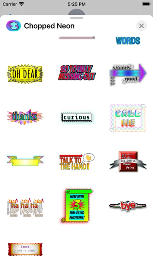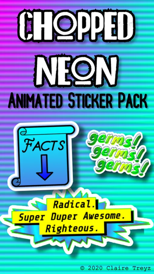 Well, fear not, my weary sticker-seeker, for animations does this sticker pack deliver – over half the stickers are animated, and the rest are so loudly fluorescent your eyes may very well see animations anyhow.