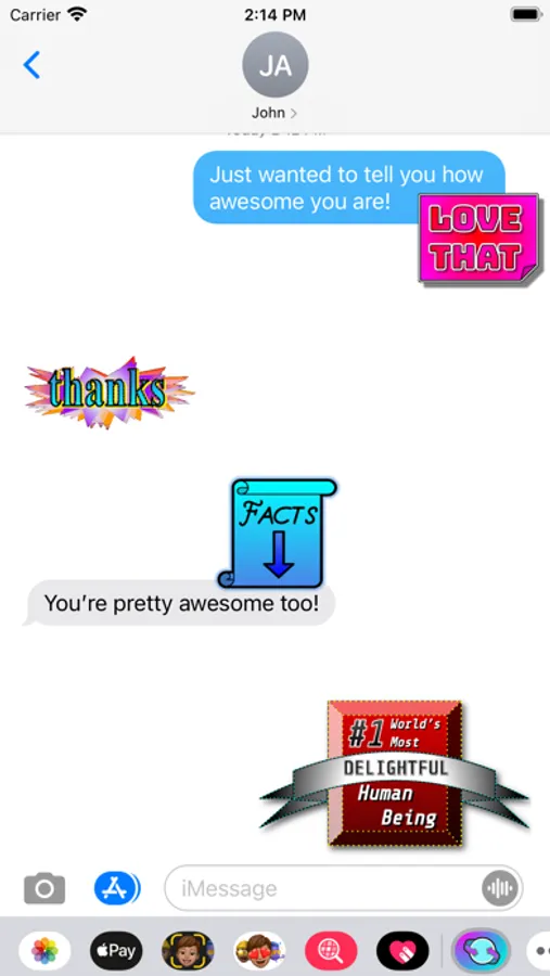 You're looking at this sticker pack and thinking, "Wow, this has got it all – colors brighter than my old kindergarten outfits, ultra-relevant and pithy phrases, the deft touch of a Word Art connoisseur – why, I can nearly hear the dulcet tones of dial-up crooning in my ear.”