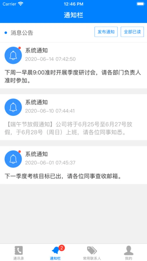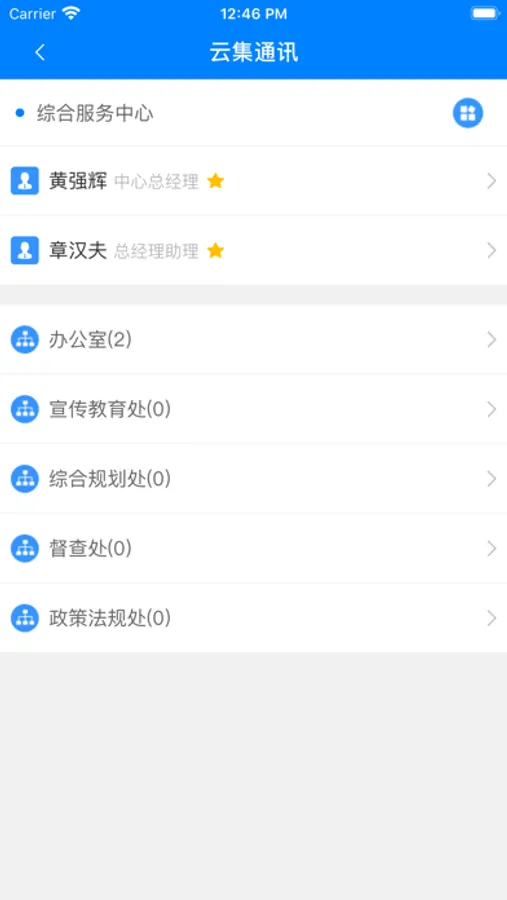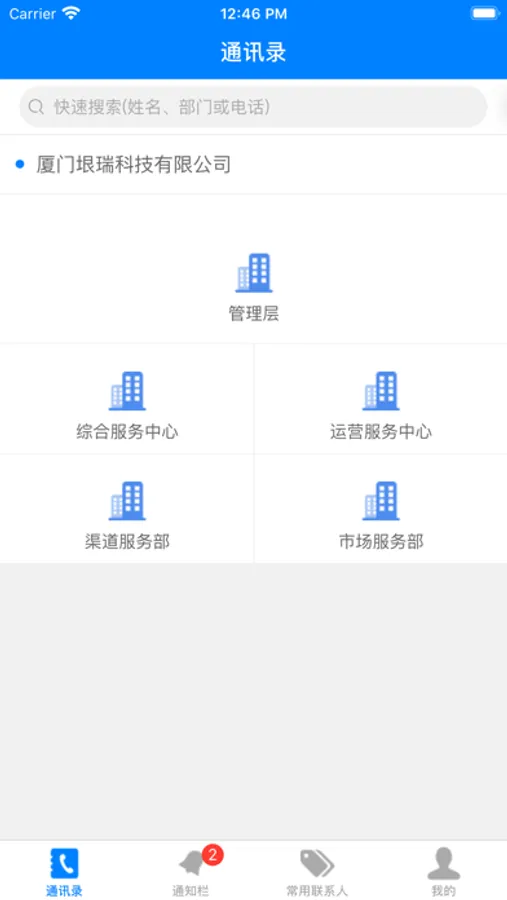 - 通讯录:人员组织架构,快捷搜索机构成员信息
