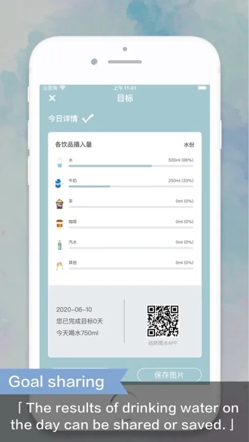 *Target sharing: the results of drinking water on the day can be shared or saved, and remind each other with friends.
