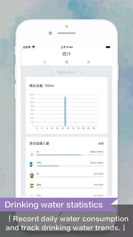 * Drinking water statistics: record daily water consumption and track drinking water trends.