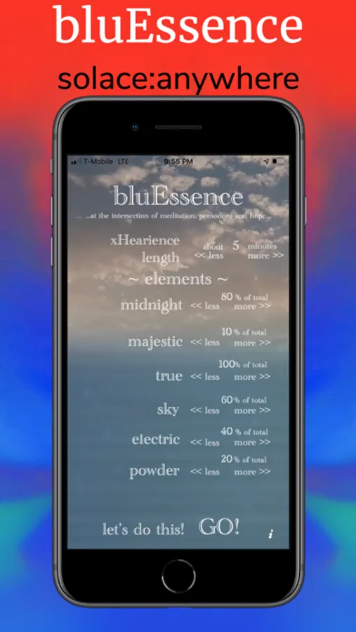 where most timers make no sound until the time is up, “bluEssence" plays immersive, meditative, and personalized audio which fades out over 20 seconds to remind you of the time limit you set