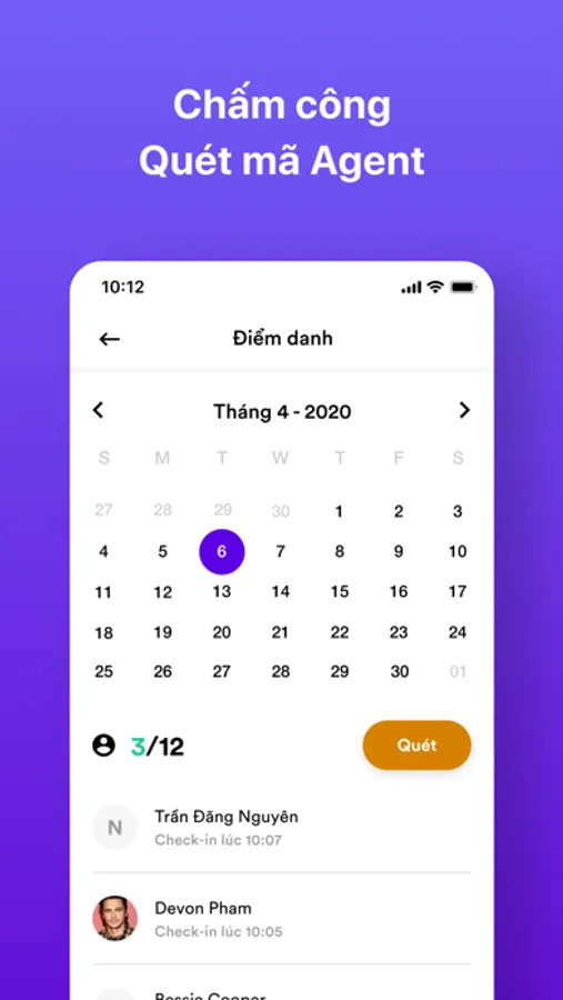 - Quét QRCode của môi giới trực thuộc mỗi ngày để chấm công