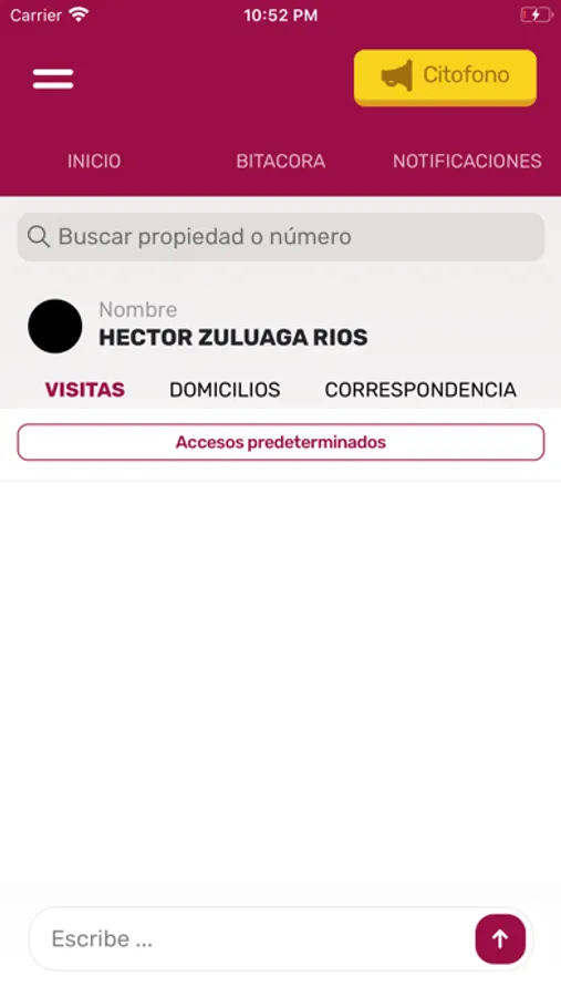 tendrás a tu disposición un citófono virtual que permite enviar y