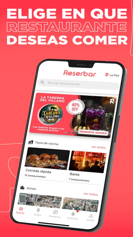 Gana hasta 50% de descuento en tu comida preferida realizando una reserva en cualquiera de nuestros restaurantes en Bolivia, es simple, gratuito y lo puedes hacer hasta 1 minuto antes para ganar el descuento