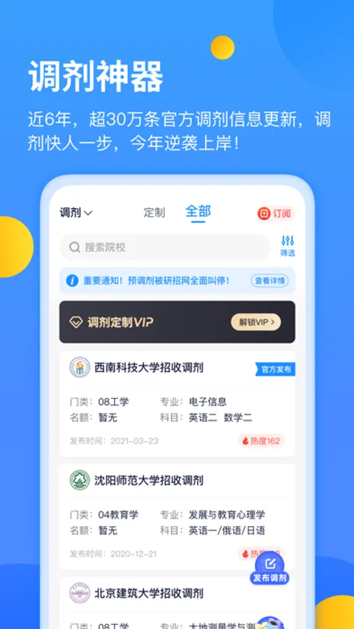 -院校:订阅报考院校,接收院校最新资讯,信息不遗漏