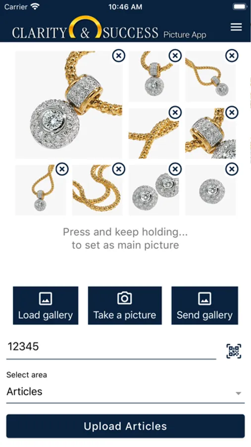 Jewelers and goldsmiths can use the app to take multiple pictures with the internal camera of the mobile device or load them from the picture gallery. If there are several images for a product, one image is always defined as the main image.