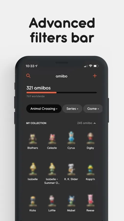 – Advanced filters bar, so you can search by name, game or amiibo series