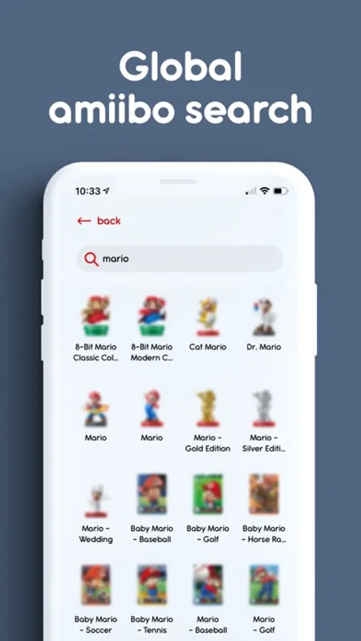 – Owned collection with the ability to add new amiibo by scanning their NFC tags or importing amiibo from files