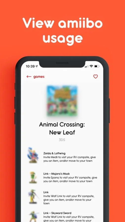 The app works offline, so you can always get access to your fantastic Amiibo collection any time anywhere, while your amiibo are still at home.