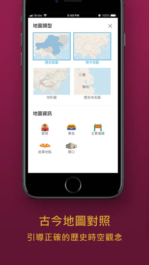顯示人物史事地點,以及地勢、河流、當時都城位置