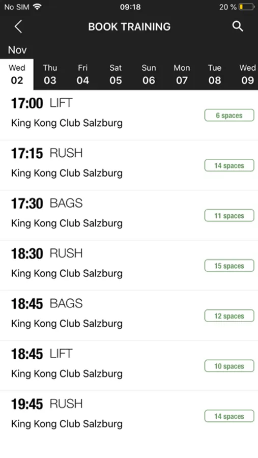Unter BOOK wird dir jedes Workout angezeigt, zu dem du dich einbuchen kannst.