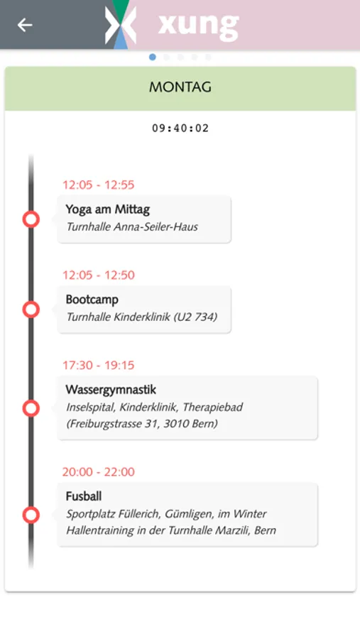 Sie finden die internen Sport- und Freizeitangebote bequem auf einem übersichtlichen Stundenplan.
