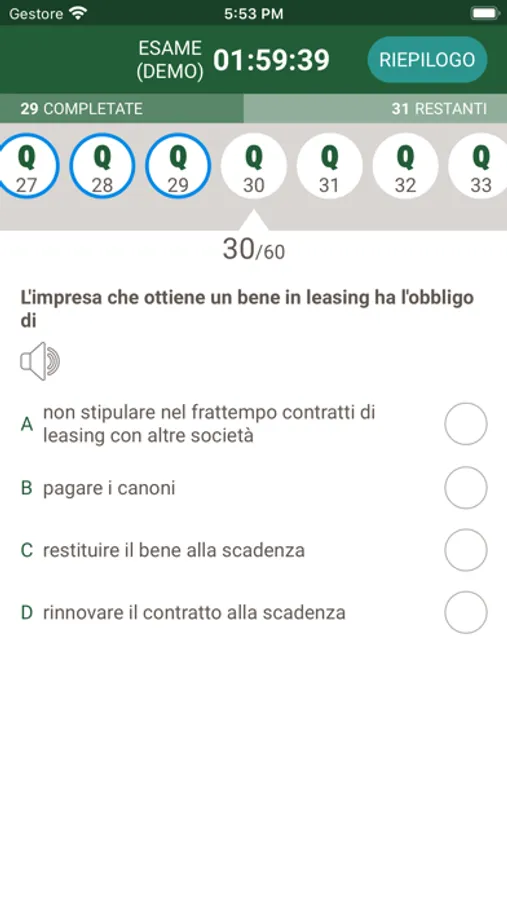 La versione Demo, gratuita, contiene un numero limitato di quiz e serve per prendere confidenza con lo strumento.