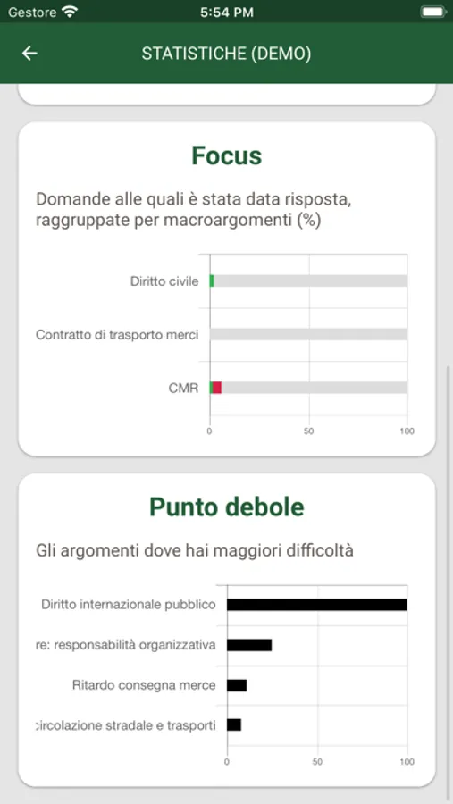 - Punto Debole: sono le domande che hai sbagliato, e che ti vengono riproposte per un ripasso degli errori